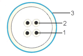 1、软芯铜导体(四钢三铜) 2、绝缘 3、护套