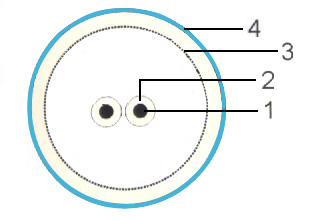 1、软芯铜导体 2、绝缘 3、编织屏蔽 4、护套